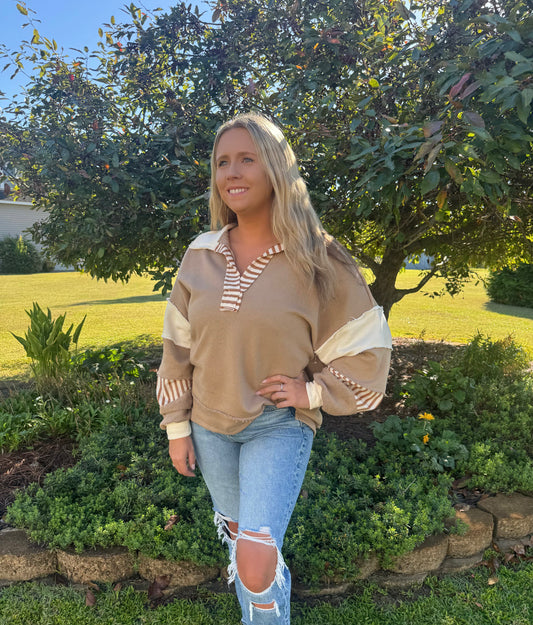 Sold outThe Sutton Top in Taupe/Cream